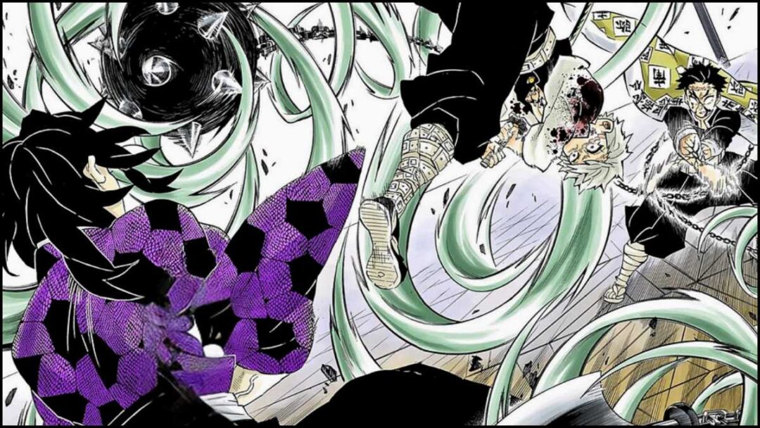 Pada pertarungan final di Kastil Tanpa Batas, Kokushibo bertarung melawan empat pembasmi iblis, yang tiga di antaranya adalah Hashira, yaitu Muichiro Tokito, Sanemi Shinazugawa, Gyomei Himejima, dan Genya Shinazugawa.